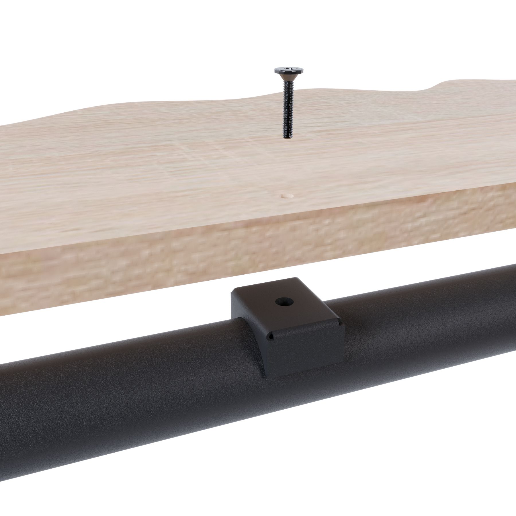 Используется для крепления горизонтальной плиты к трубе 32мм, переходник крепится саморезом по дереву через сквозное отверстие в трубе.